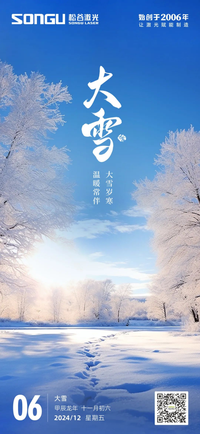 大雪至,福(fu)气(qi)盈门。愿这份来自松谷激(ji)光科(ke)技的(de)祝福,如同雪(xue)花般纯净无瑕,飘落在您的心田,为您和您的家(jia)人带来一整年的幸福与安(an)康。愿您在新的一年里,事业蒸蒸日(ri)上,家庭和睦美满,健康平安,笑口常开。