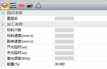 正常开机后(hou),将能量调(diao)至30%以下,其余参数不变(操作界面如下图所示(shi)),空(kong)打出(chu)光预热约10分钟,再进(jin)行生产加工(gong)。