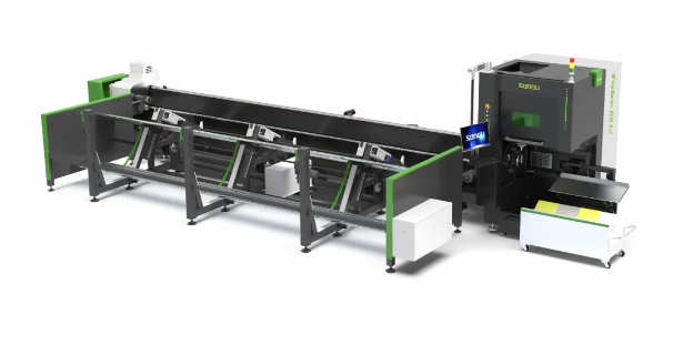 龙门式横梁结构,高动态性能,高刚(gang)性,切(qie)割精度高,稳定性好;标(biao)配气动渐变凹轮辅(fu)助支撑,避免管材自重下垂,减小变形,提高切割精度;前卡避让(rang)短尾料切割,实现更短尾料切割;全自动润滑(hua)系统,定时(shi)自动供油,无需(xu)人工干预;模块化设计(ji),可选配不(bu)同的上下料方式,根据客户实际生产需求自由组合摆放。